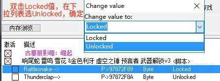 4.双击Locked值,在下拉列表里选Unlocked,确定。再切回游戏,进营地看看是不是武器出来了。