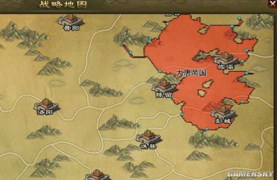 5.联盟圈地,圈地的好处是能拿到更多的五铢,不过需要整个联盟的人来配合,也是这个游戏的亮点之一。在建好联盟招好人之后就可以筹备圈地了,要综合考虑地形还有每个人能打到多少块地,有没有机会把占地连接上。页面右上角有战略地图,能够看到联盟的人具体位置,圈地的原则是尽量利用山地,避开主城。山地是可以协助包围的,所以尽量连到山上然后根据山的走势来圈,另外整个联盟的人都连接上形成包围圈之后是要把包围圈里面的城市打飞才会有收益的,所以要绕过地图上的主城。定好每个人的位置之后可以先随机飞到那个州附近,然后再定点飞,这样可以省不少的元宝。另外如果形成了包围圈,包括自己联盟的人在内都不能飞到包围圈里面的了。