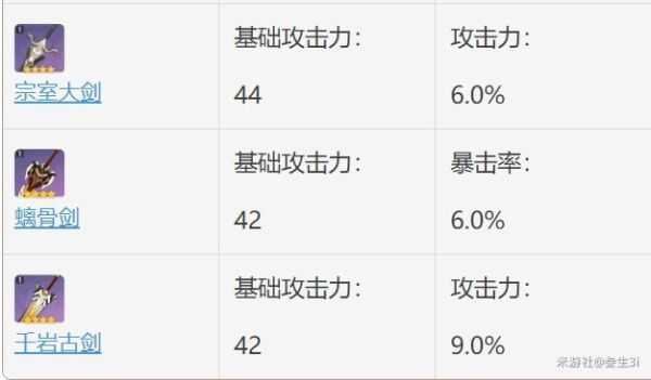 北斗:北斗虽然像是个捡破烂的,除了雪藏的星银不是很合适(快进到有大佬开发出物理北斗的玩法doge),其他的武器她都能用,但我觉得北斗最需要的属性还是攻击力和暴击率,这两点千岩古剑都能提供,而且北斗本身是璃月角色,自带一层buff,如果北斗跟小艾咪组双雷共鸣,其他两个都带璃月角色(如行秋七七或行秋香菱),千岩古剑就能发挥出合格的实力。