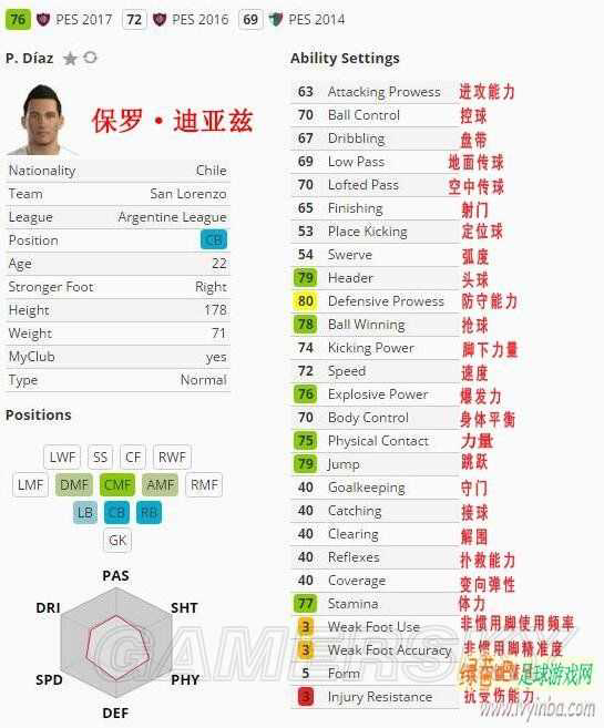 《实况足球2017(PES2017)》的妖人是很多玩家喜欢的,今天就为大家带来了实况足球2017阿根廷联赛75以上评分妖人大全与推荐,让大家看看阿根廷有什么强力的妖人,想了解的玩家不要错过,一起来看吧。