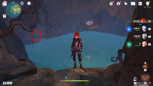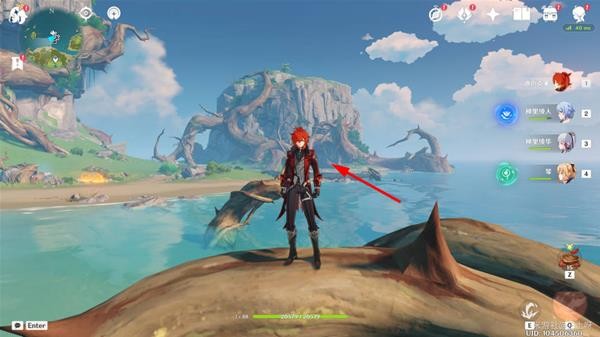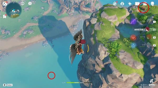 1~3.普通宝箱×2+精致宝箱,传送到山顶锚点,然后往南走,来到悬崖边,按下图所示解谜