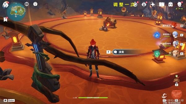 5.调整入口处的喇叭,然后演奏,开启宝箱。此时里面的宝箱还拿不到,有树根挡住音符