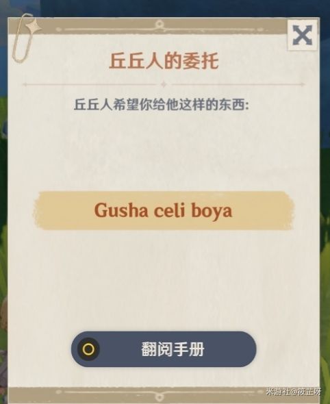 找到这只“愤怒的丘丘人”对话,会让你去找Gsha celi boya 这种东西。