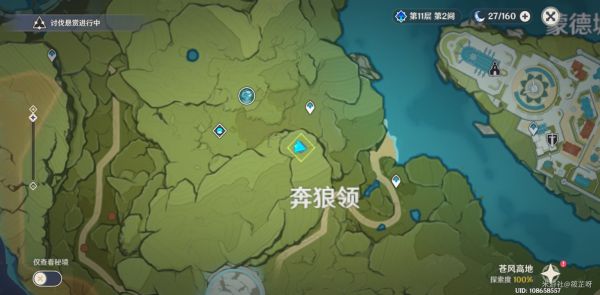第二只丘丘人在下图位置,旁边有几只风史莱姆尽量先打掉,以免出现在对话中被风史莱姆攻击的问题。