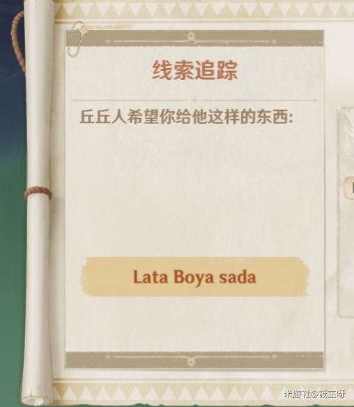找到第二只丘丘人—“思索的丘丘人”后,会让你寻找“Lata Boya sada”这类东西。