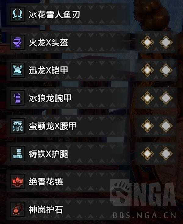 胸甲我用的迅龙、刚好够材料就做出来补防御,技能也不错。