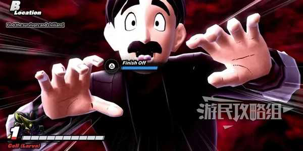 游戏刚开始的时候,侵略者自身还处于较弱的阶段(尤其是塞鲁的幼虫阶段),此时最好先避免和幸存者发生冲突,多逛一逛洞穴或建筑,找到NPC,按△键(PSN)/Y键(Xbox)干掉他们,积攒经验值。