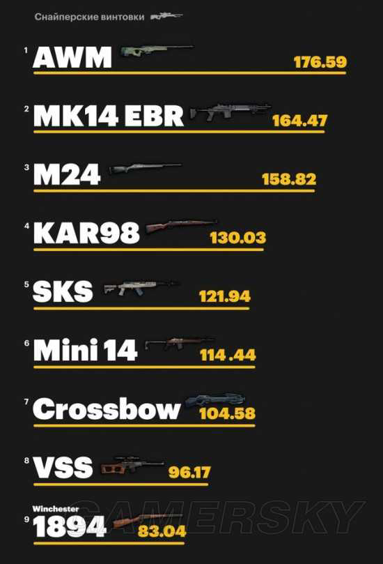 最新统计的枪械场均伤害排名图,狙击类中MK-14位列第二。