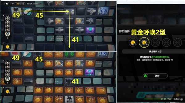 (18)接着去41区域的下面区域按R键使用【黄金呼唤2型】,将所有空格变为齿轮硬币,然后将41区域下面的齿轮硬币全部收集即可