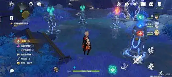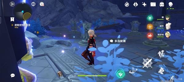 里面是四个水石碑,由于截图问题可能看不清楚见谅哈,旁边是可以改变队伍配置的,先不要急着打石碑,因为那些都不是真的但是先把水系切出来还是必要的