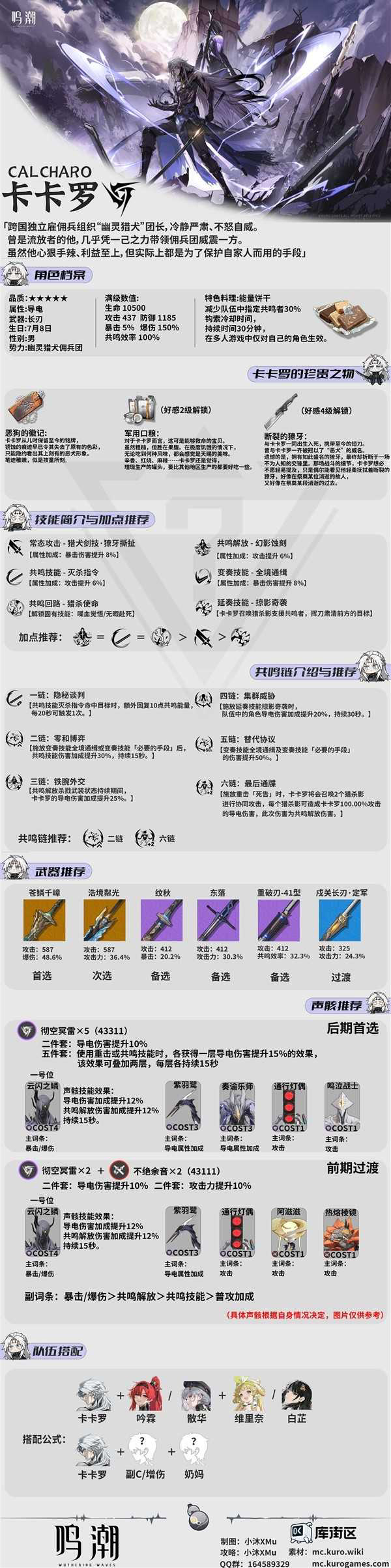 《鸣潮》中卡卡罗是一名五星导电属性角色,在公测版本伤害非常可观,那么卡卡罗出装与配队都是什么呢?下面请看由“小沐XMu”为大家带来的《鸣潮》卡卡罗全方位养成攻略,希望可以帮助到大家。