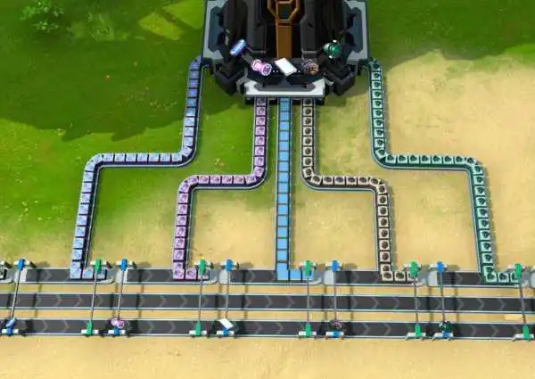 (注:由于3级蓝色分拣器受科技等级影响,一次会抓取多个货物,可能会导致各种问题,因此实际应用中投放分拣器请不要使用3级蓝色分拣器,回收分拣器则可以使用。)