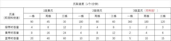 图为吧友@所总结的:在不同的分拣器速度和传送带速度下,环带可以容纳多少种材料混带