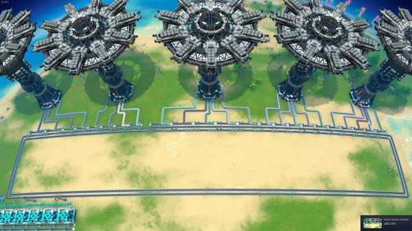 下图是供料区5个星际物流塔和双圈环带的总体效果图: