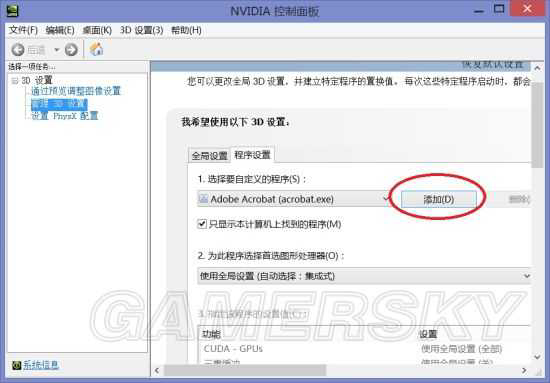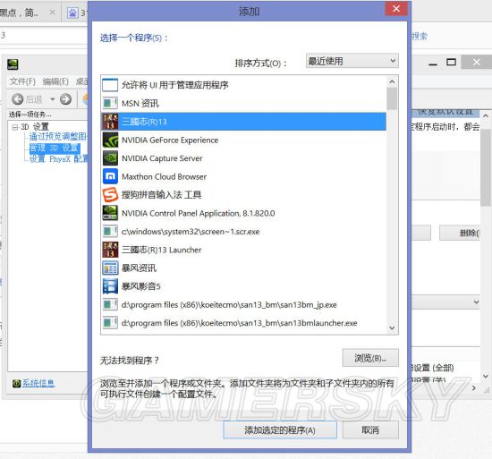 然后在“管理3D设置”里的“程序设置”标签里添加313程序