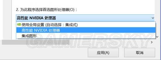 然后在首选图形处理器里选择“高性能NVIDIA处理器”,再应用,游戏就会流畅很多了