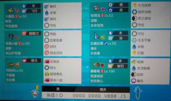 拉普拉斯:内敛特攻HP拉满,开始并不是队伍成员,后来环境里实在太多烦人的海兔和鳃鱼龙了,纯粹是为了对付这两只宝可梦用的,这两个冷冻干燥都可以确一,另外带了个打雷应对雨天内战,不过其实也可以换成灭歌配合哥德小姐阴人。