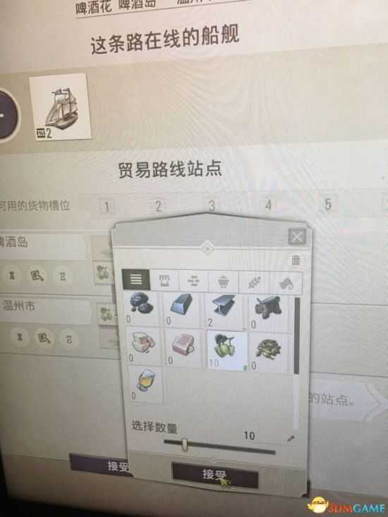 2、A城啤酒花设置数量,如图2:设置好数量后,在接受的时候,按住键盘上的Shift键再接受。
