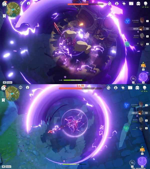 美中不足的是,北斗几乎不可能实现充能上的自给自足,为了保证大招的释放频率,笔者几乎是将她与菲谢尔绑定使用的。虽然双雷后台的配队自由度比较高,但是在需要腾出位置选择特定角色破盾时,往往是保留菲谢尔、将北斗替换下去……