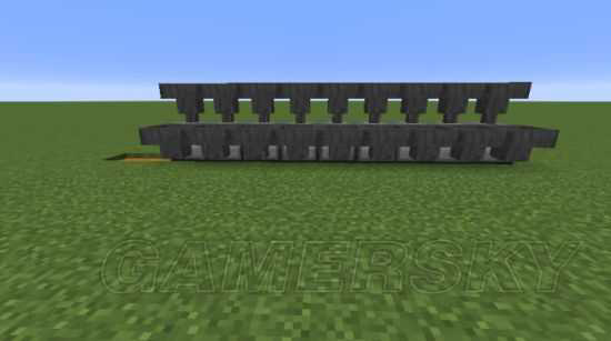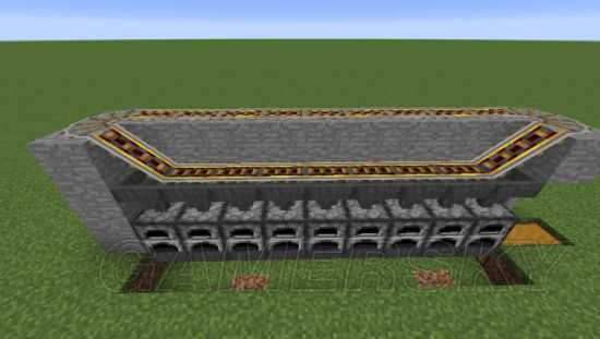 这个装置主要是利用了运输矿车能够往所经过的漏斗里平均放物品这个特性为原理制作的。这个熔炉主要的优点是,不管熔炉的数量是多少,原材料和燃料都只需要放置一次,大大提高了效率。