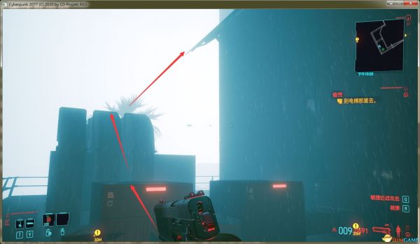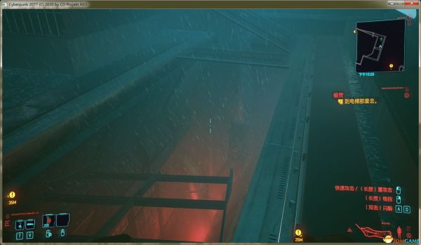 主线剧情演到V和杰克被飞行器攻击跳下斜面玻璃再掉入空调井内,聊完天后开始移动。