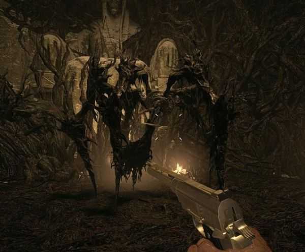 全身充满着火焰升出来对伊森发射无穷无数的火焰弹,这个时候需要立即躲到黑色柱子后面,没有躲到柱子后面会直接被烧成泥。