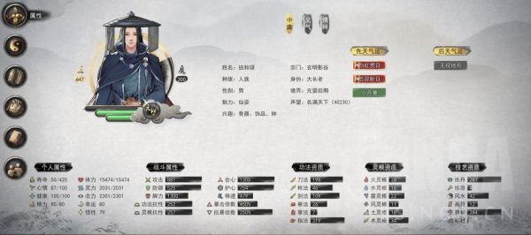这游戏属性最重要的是攻防,初期1点攻防差别太大了(所以第一个逆天改命选老而弥坚很不错,寿命基本无限的),所以有时候遇到打不过的怪可以吃点加攻击的药,效果非常非常明显,资质属性后面随便刷的,会心效果也不大,我这个档就是想玩下后裔天赋(主线解锁,加攻击暴击射程),出了个白虹就玩指法了。