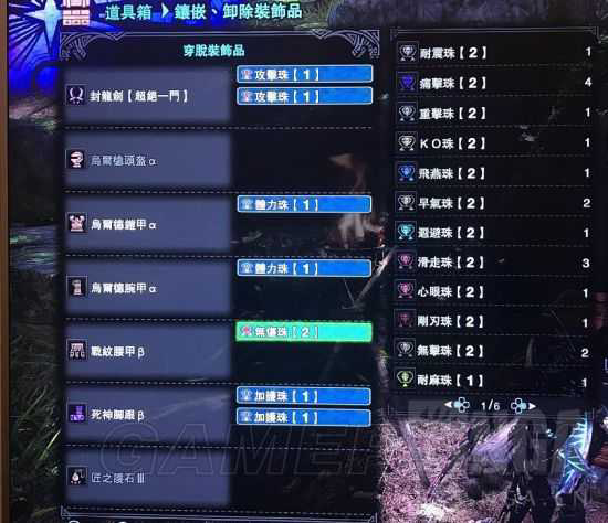 任何武器都可以做一套配装,只需要武器上有一个1级孔即可(无属性武器则需要2级孔,因为你还要上一个无击珠),以我的超绝为例,武器上两个洞,用上攻击X2,可以触发攻击+5%会心的效果,所以我选择了两个攻击珠。