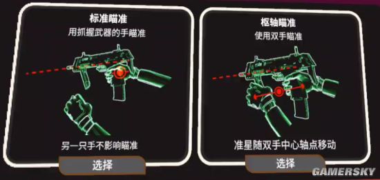 瞄准模式:区别为单手瞄准以及双手瞄准。各位英雄可以根据自己的习惯进行选择。
