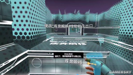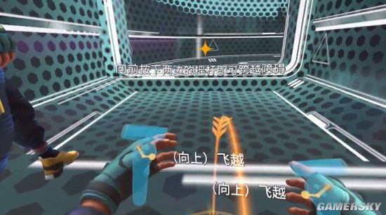 建议选择沉浸式冲刺,这样双手向下即可以冲刺。冲刺时前方会有一个障碍物,需要按住右摇杆向上推跳过去,之后冲刺进入门中。此处的难点就是在跳跃上面,只要能一次跳过去,冲刺进入大门的时间是足够的。