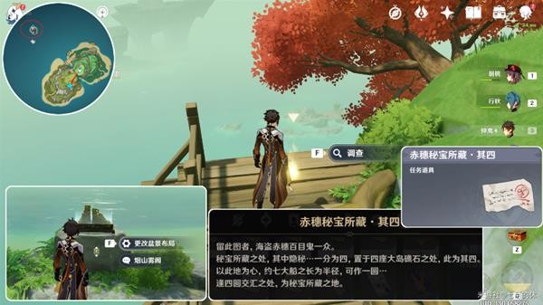 3.传送到烟山雾阁,把盆景布局改成磐固山石,然后来到布丁岛传送点,往西南方向下面飞,在栈道上调查获得任务道具「赤穂秘宝所藏·其三」,获得任务奖励。