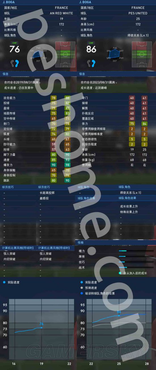 使用评价:博加是一名很多pes2017玩家都表示很好用很强的中前,我也注意他了一段比较长的时间。但有点不巧的是,练到博加时,和他一起搭配培养的妖人已经被选得七七八八了,尤其是负责防守的妖人已经都练了,而前腰和左翼这两个妖人过多的位置还有好几位大爷级别的嗷嗷待哺。于是这个存档被配上了2个前腰,加上两个边锋和一个中锋,进攻型球员已经达到5个之多,博加作为最后4个中前卫之一被分到这个存档里,由于位置相对于5位攻击线选手较为靠后,所以博加大部分时间都在负责防守,应该说没有完全发挥出他的实力。那么还是要说一说博加的表现,虽然博加的防守能力值很低,但出奇的防守效果却不错,因为博加对落点和球路的判断非常准确,在我把防守战术设置为全场就地反抢时,锋线的3人和前腰的2人已经完成了两轮拦截,在这个时候,对方的拿球推进已经比较困难了,通常都会选择传球,博加的跑动范围极大,移动速度也极快,大多数时候,对方的传球就是坏在博加脚下。与此同时,博加本身是作为一个攻强于守的球员,可以立即持球带动全队进行高速反击,前场5个人一边前插一边伸手要球,视野所见之处随便选一个塞上去都有人接应,更可怕的是博加自身的带球跑速度也非常快,如果玩家可以用他过一两个人,那前面真是一片开阔,完全可以形成6打3,6打2,6打1的局面。当然博加也有他的弱势,身体那是真不行,持球射门命中率远比接应破门效率低,但他离禁区太远,要想无球跑位抢点得分,机会很少,所以希望有喜欢博加的玩家可以用他作为进攻线球员使用,他的评星和定档应该比现在只高不低。