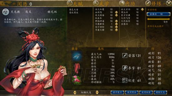 小师妹在此mod里简直累赘。本体里打boss,紫喵作用巨大,但这个mod里,boss没法卡,小师妹战略意义就几近于无了……心疼。试过化工、声无哀乐、少林九阳和星宿减防减攻,但boss根本不吃这一套,行动能力提升后,boss总能找一个输出最好的位置
