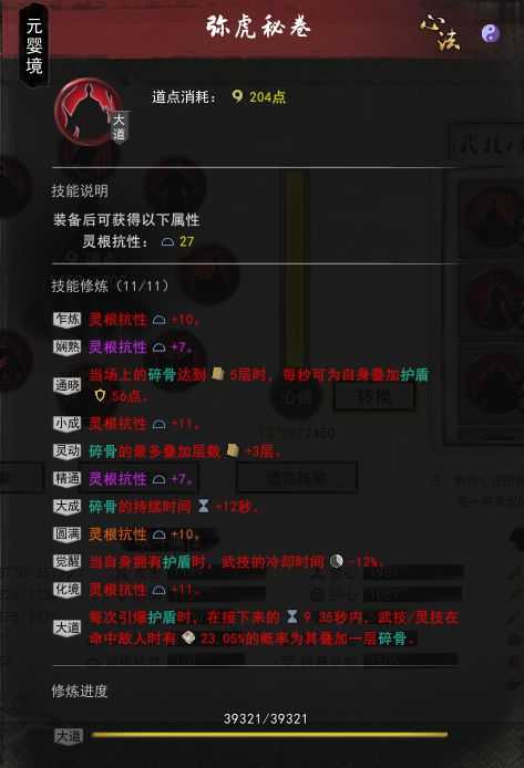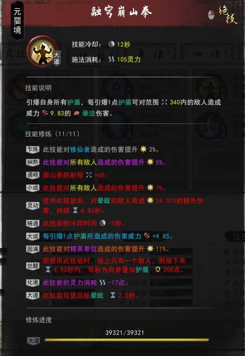 每消耗1点灵力,叠护盾——这个词条配合右键崩山拳,可以做到出场空放崩山直接触发拳秘卷的“每次引爆护盾武技/灵技增加一层碎骨”