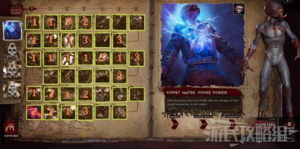 在加点方面傀儡师无需留手,幸存者能开黑车队,也不会在配合方面对恶魔仁慈,那么为什么傀儡师要在自己的最佳单位上有所保留呢?精英单位Demi-Eligos能够放出复制体还可以远程攻击,能力十分全面,建议毫不犹豫地选择与之相关的天赋。