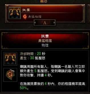 挑衅 俗称嘲讽 嘲讽之后 回气技能 增加自己输出的必要技能 同时提高百分之50的格挡