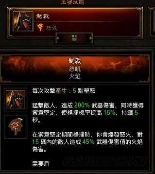 回气技能 制裁 普通一下 增加格挡百分之15 格挡之后 会对身边小范围造成百分之45的伤害