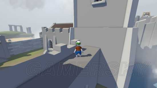 爬上墙壁,站上突出部分,往左拐,到棕色屋顶,接下来继续往上爬