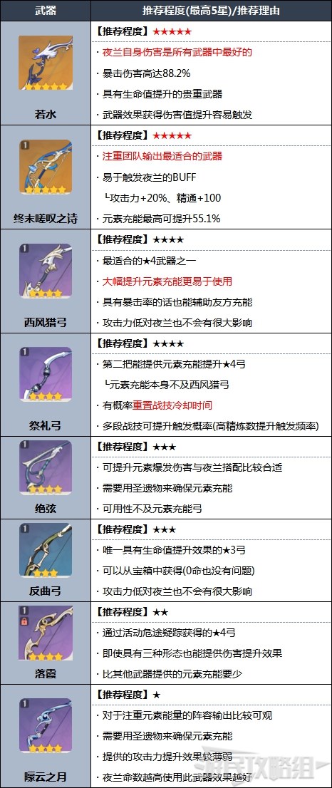 《原神》在2.7版本中新增了水元素角色夜兰,那么夜兰该如何选择圣遗物和武器呢?下面就为大家介绍一下《原神》夜兰配装及武器推荐,希望对大家有所帮助。