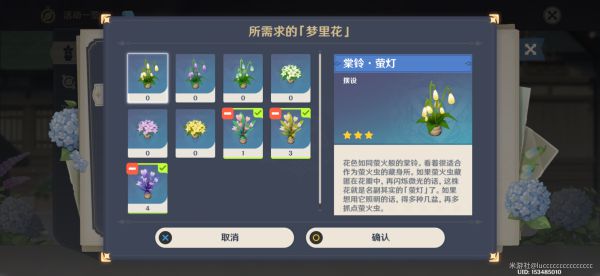 注意:花卉要种到湖中的田里,而且一定要看好是哪块田,不是对应的田地是种不上的!