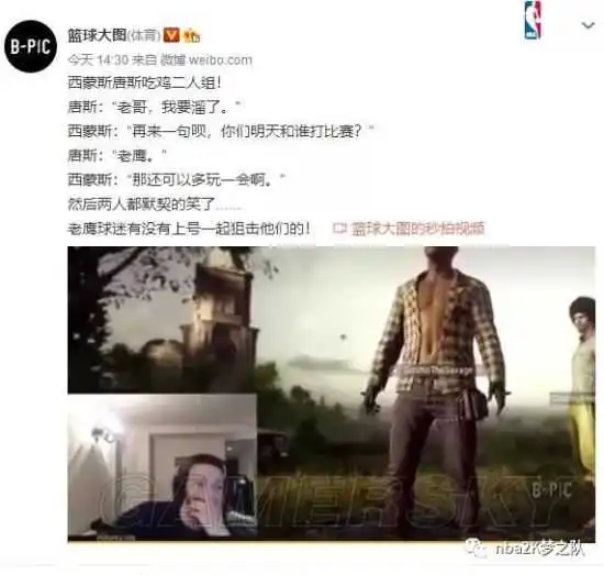 此外,除了这场比赛本身,还有一件更让球迷津津乐道的事情,那就是在与老鹰队比赛之前,唐斯和西蒙斯还在一起联网“吃鸡”,然后就发生下图中的这段对话: