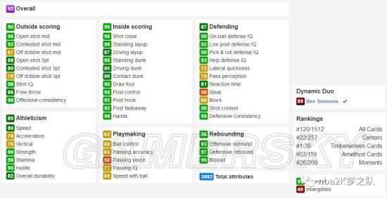 自此,NBA又多了一对“吃鸡兄弟”,2K也将这个梗做到了游戏中,这张紫色唐斯可以和红色西蒙斯形成动态组合,但Duo之后两张卡的颜色并不会改变,属性的提升也不明显。
