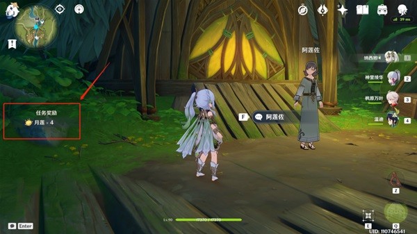 对话完成后,可获取4朵月莲。(对话奖励为一次性奖励)