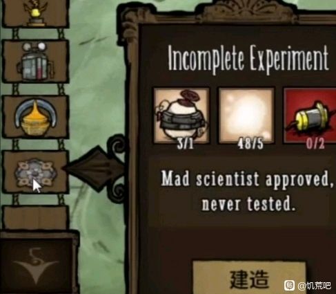 2:三个祭坛共鸣后会在中间出现一团能量体,然后全图会持续一天月岛状态,所有人的san都会替换成启蒙值,地下应该不影响(没有测试过),然后是地图会出现很明显的风暴图标,进去后有类似沙暴的效果,视野缩小移速降低,有趣的是沙漠护目镜能抵消这个效果,不知道是不是bug,然后需要走进去找到发明家的投影,对话就会给每个人两个蓝图,一个是育碧帽子,一个是祭坛科技,育碧帽子两个玻璃碎片一台高性能服务器(生土豆)。