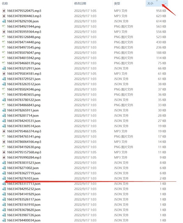 里面文件json文件很多,很简单,由于每个人的文件名会不太一样,咱们通过排序方法找到唯一2kb的那个文件。