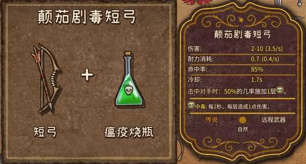 5.颠茄剧毒短弓(传说,自然,远程武器):短弓+瘟疫烧瓶
