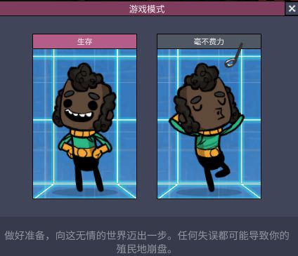 意思就是游戏难度,个人认为这两个选项完全无意义(玩过饥荒的应该都懂这个尿性),因为随便点一个进去后,玩家还是可以随意修改游戏的子项难度,所以完全可以无视掉。