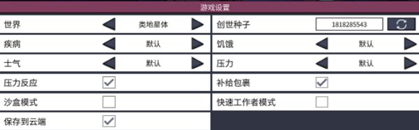 类似饥荒,但是没有饥荒那么繁杂,如果想增加选项可以使用MOD