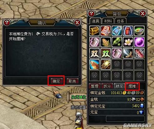 玩家可以在城中的摆摊区进行摆摊,打开背包,摆摊按钮。交付1银,就可以进行摆摊。