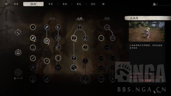 我觉得黑猴的核心技能一个是气力里的定息存神,另一个就是三种棍法和棍势上限,武艺优先考虑增加棍势获取,法术优先点了定身术。